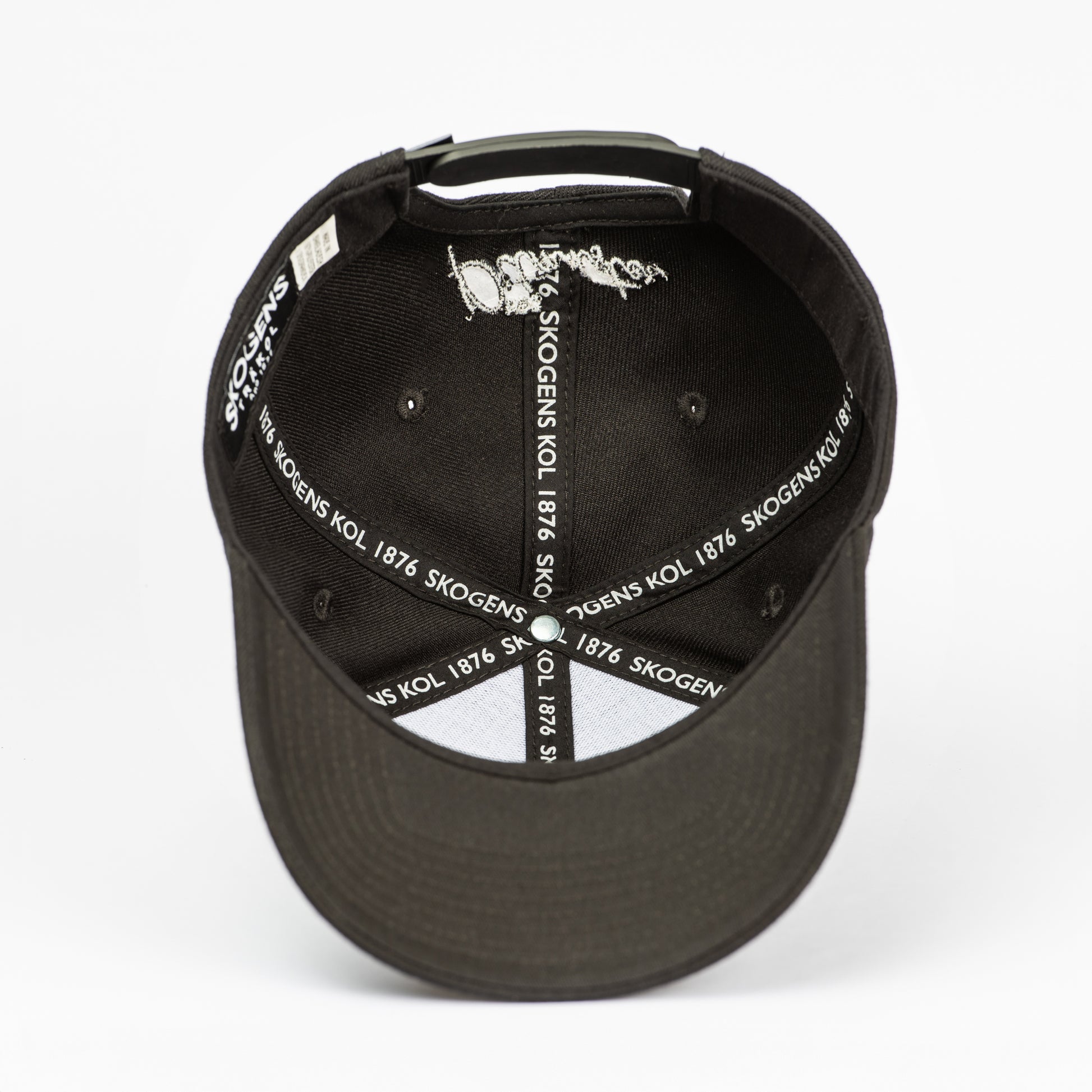 Snapbackkeps med brodyrer på flera ställen.